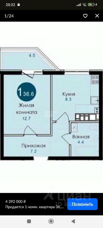 Арт. 115090370 В продаже видовая однокомнатная квартира, расположенная в с. Гайдук г. Новороссийска.