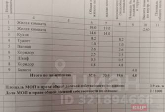 Общая площадь квартиры 52,6 кв.м. плюс застекленный балкон 4 кв.м.