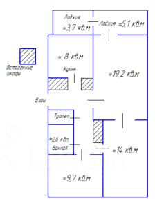Квартира без ремонта, поэтому вы можете воплотить в жизнь все свои самые смелые дизайнерские мечты и создать идеальный интерьер. В квартире есть раздельный санузел, большие вместительные встроенные шкафы в прихожей, заменяющие гардеробную. Лоджия большущая, где можно устроить зону для отдыха или хранения вещей.