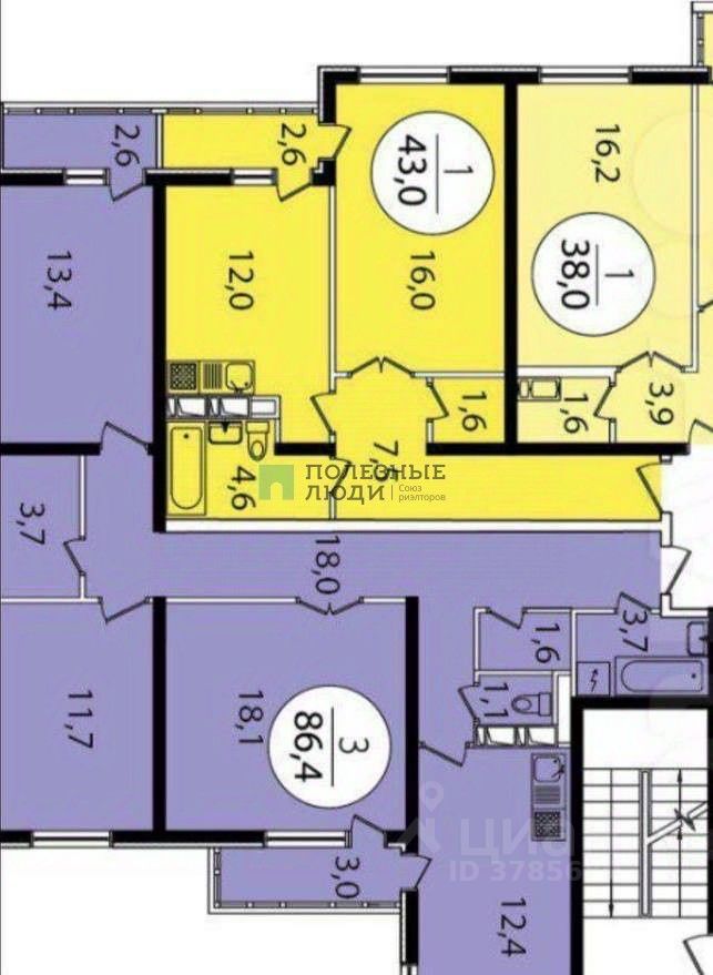- *Площадь:* 86,4 м², 3 изолированные комнаты идеально для семьи с разнополыми детьми!