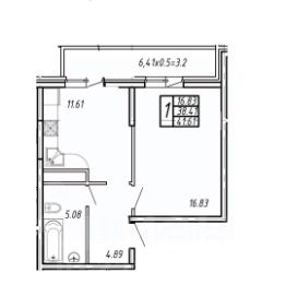 Планировка квартиры: комната 16,83 м2, кухня 11,61 м2, санузел совместный, лоджия ленточная выход из комнаты и кухни.