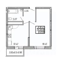 Планировка квартиры: комната 18,45 м2, кухня 12,42 м2, санузел совместный, балкон застеклен выход из кухни. Из окон открывается прекрасный панорамный вид в сторону гор и моря.