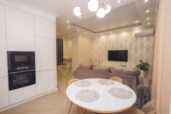 В продаже евро двухкомнатная квартира с дизайнерским ремонтом в Южной части, рядом с набережной и морем. Общая площадь 57кв., 4/15 эт.. В квартире качественный ремонт в приятных нейтральных оттенках, встроенная техника и мебель на заказ, дорогие материалы отделки, продуманный дизайн. Состоит из прихожей, большой кухни гостиной, застеклённого балкона, совмещённого сан. узла, просторной спальни. Продуманная планировка, много ниш и шкафов для хранения, интересные дизайнерские решения, сделано и подобрано всё со вкусом. Состояние квартиры отличное, мебель и техника остаётся при продаже. Вид в сторону моря и города. Закрытая территория, подземная парковка, детская и спортивная площадка. Находится между Южной и Центральной частью города, вся инфраструктура под рукой, в пешей доступности набережная, пляж, море, хорошая транспортная развязка, много магазинов, кафе и ресторанов, прогулочная зона, пляж и море. По любым вопросам - пишите, звоните.
