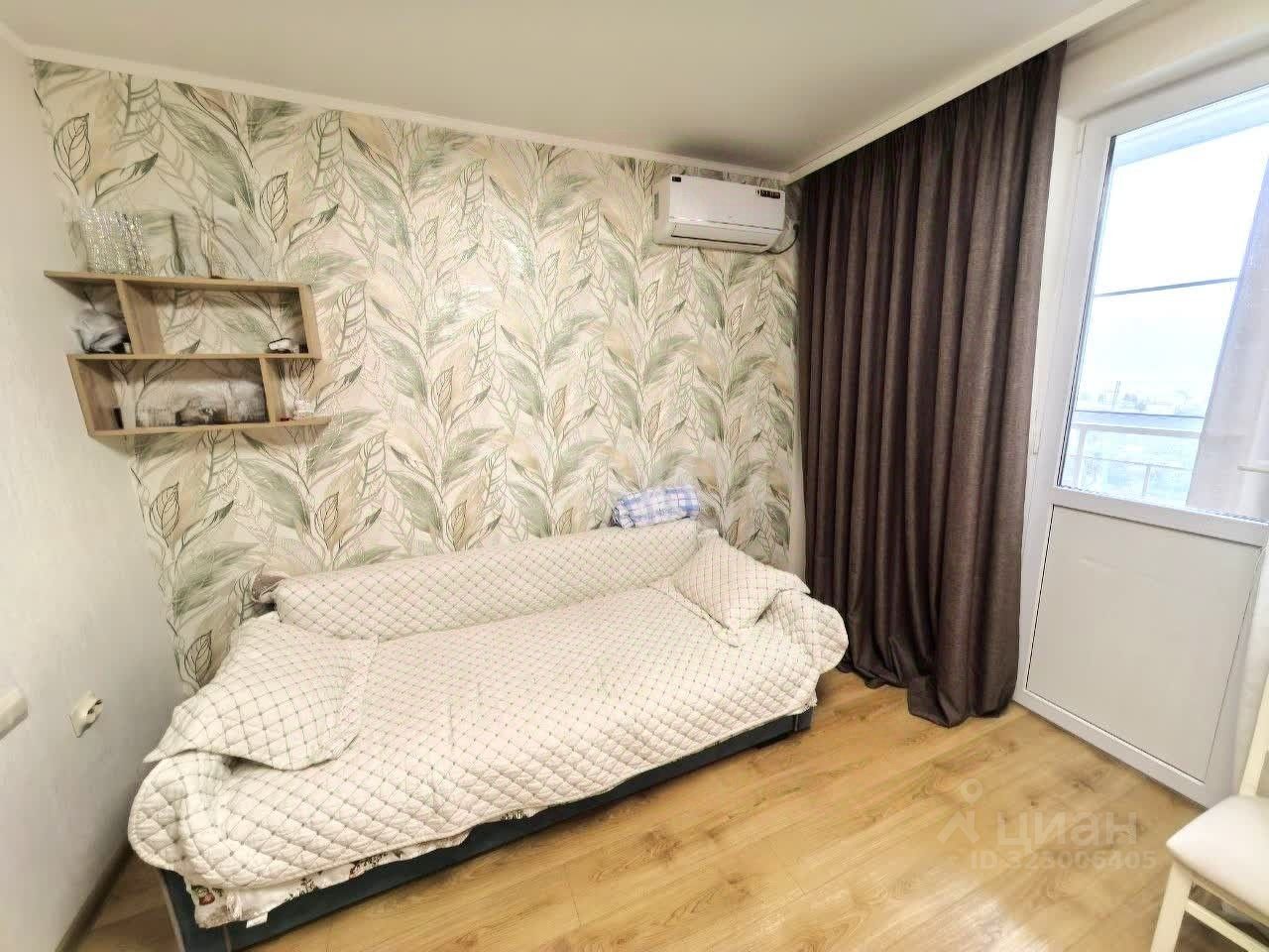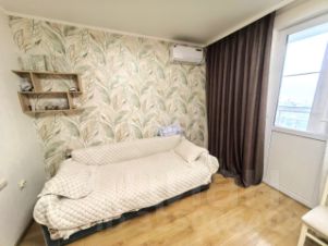 Спальная зона с диваном и зазором под расширение на кровать.