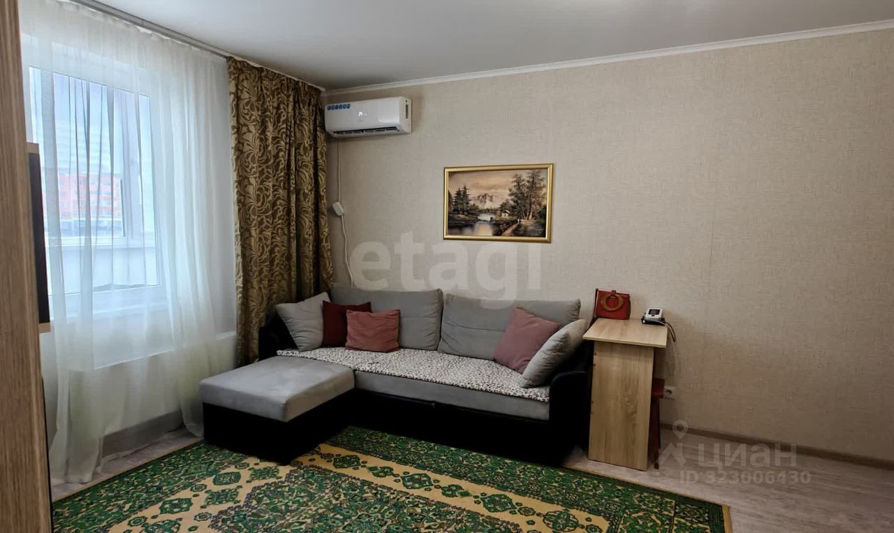 Квартира площадью 37,7 м² с ремонтом расположена на третьем этаже панельного дома в развитом районе Новороссийска с видом на море.