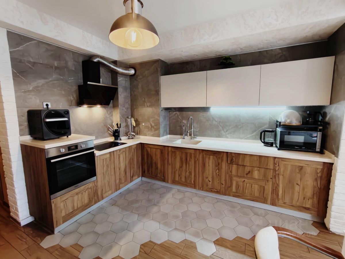 —Встроенная кухня со столешницей из искусственного камня и интегрированной мойкой;