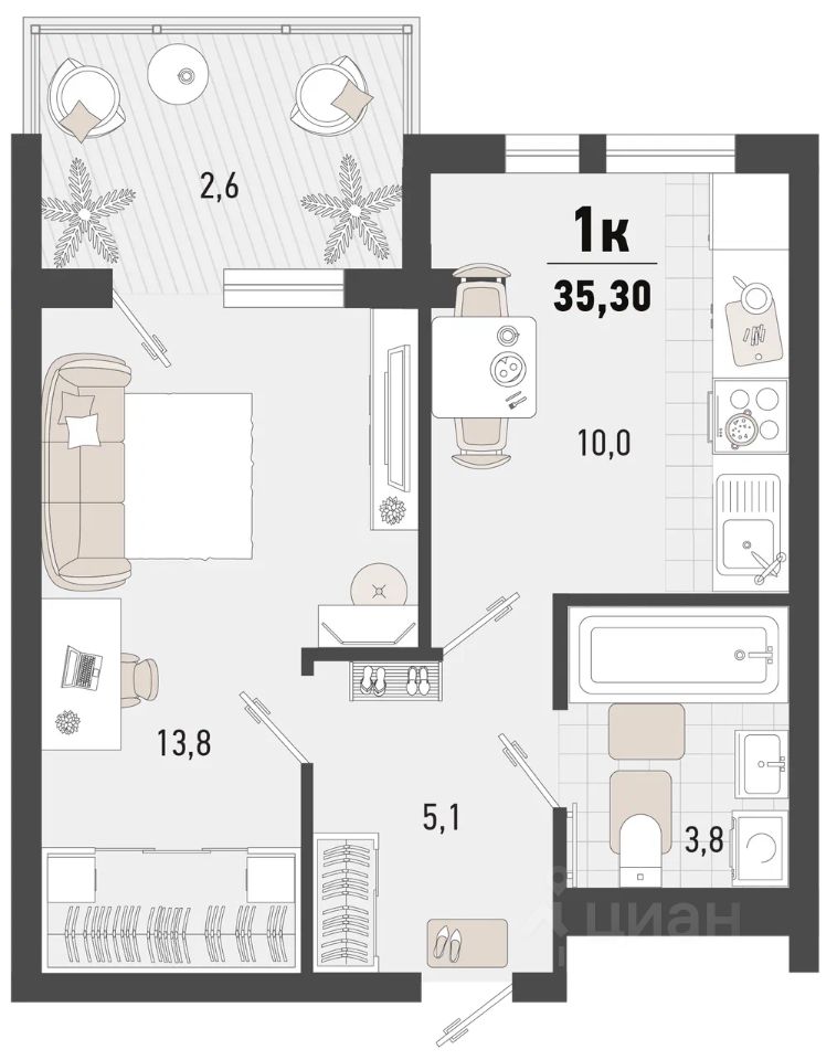 Общая площадь35,3 м²