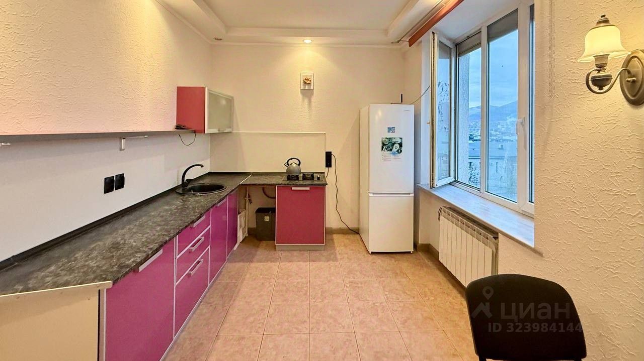 Квартира расположена на 4 этаже (никто не "ходит по голове"), в ней высокие потолки, комнаты все светлые и просторные. Три окна из комнат выходят в сторону улицы Мира и окно кухни выходит на море и бухту. Здесь утром за чашкой кофе можно любоваться закатами и рассветами.