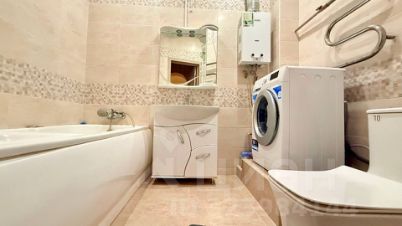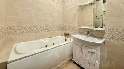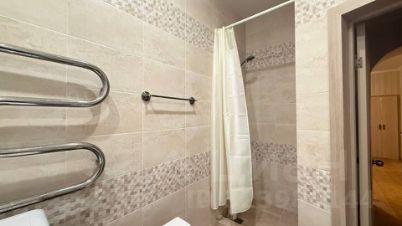 Санузел в квартире большой, здесь установлена большая ванна, унитаз с импульсной крышкой, стиральная машина, раковина и душевая зона. Также имеется небольшая кладовая.