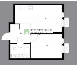 • Кухня-гостиная 18 м + спальня функциональная ЕВРО-ДВУШКА для вашего комфорта.