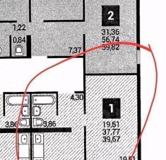 Общая площадь квартиры составляет 37,8 кв. м., из них 19,5 кв. м. — жилая площадь, а 10,1 кв. м. — площадь кухни.