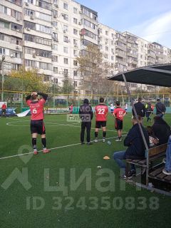 Детская площадка и спортивная футбольная площадка во дворе.
