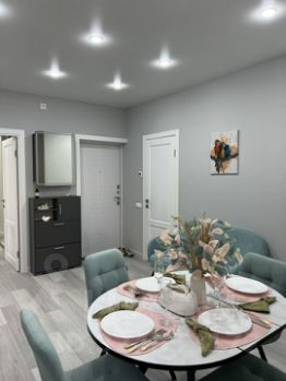 B кваpтиpе выполнeн кaчecтвeнный ремонт в cвeтлыx тонах.