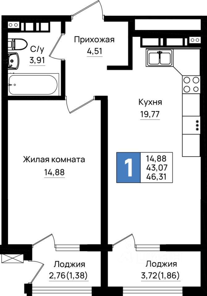 Общая площадь46,31 м²