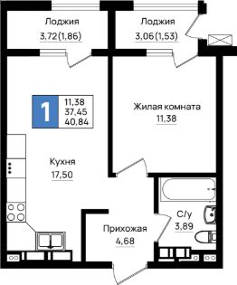 Общая площадь40,84 м²