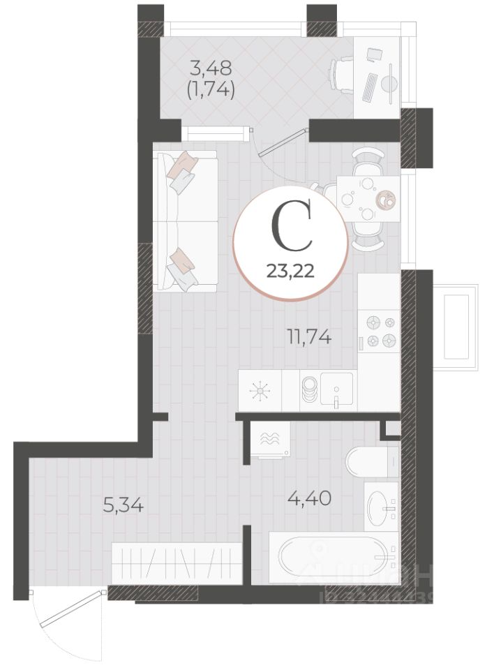 Общая площадь23,22 м²