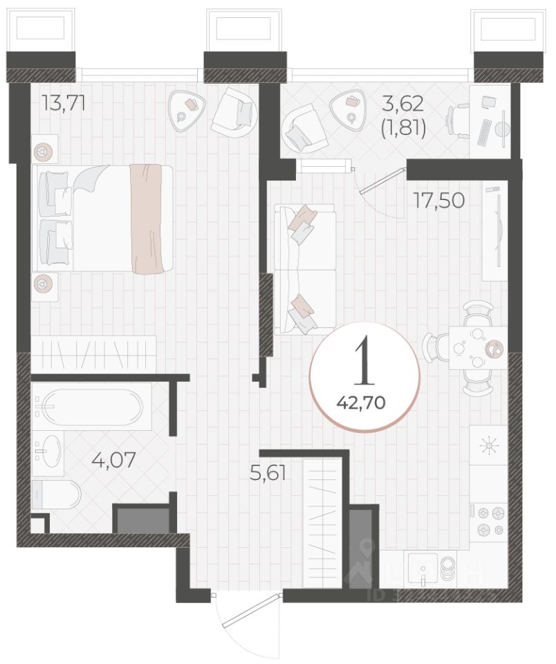 Общая площадь42,7 м²