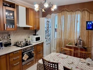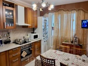 Трехкомнатная квартира площадью 68 м² расположена на 9 этаже 16 этажного дома. Просторная планировка включает изолированные комнаты, кухню 12 м² и две лоджии (6 м² и 4 м²), а также балкон 3 м², что обеспечивает дополнительное полезное пространство и естественное освещение. Все помещения оборудованы современными кондиционерами, система отопления на основе чугунных радиаторов поддерживает комфортную температуру в зимний период. Квартира продается с полной меблировкой — гостиная с диваном и стенкой, спальни с кроватями и шкафами, кухня с техникой (холодильник, плита, вытяжка), что позволяет заселиться сразу после покупки. Ванная комната выполнена в керамограните светлых тонов. Дополнительное удобство обеспечивает кладовое помещение 2,5 м² на этаже.