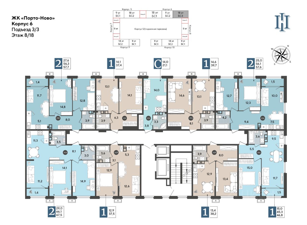 В продаже 2-комнатная квартира от застройщика! ЖК "Порто-Ново" г. Новороссийск, Литер 6