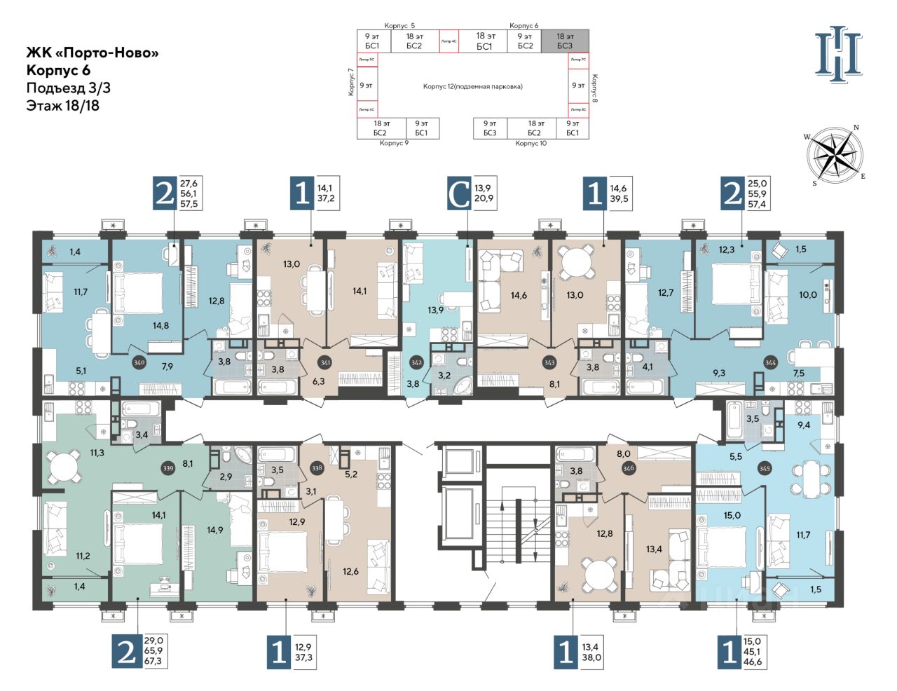 Срок сдачи: 1 кв. 2027, общей площадью 37.2 кв.м., на 18 этаже.