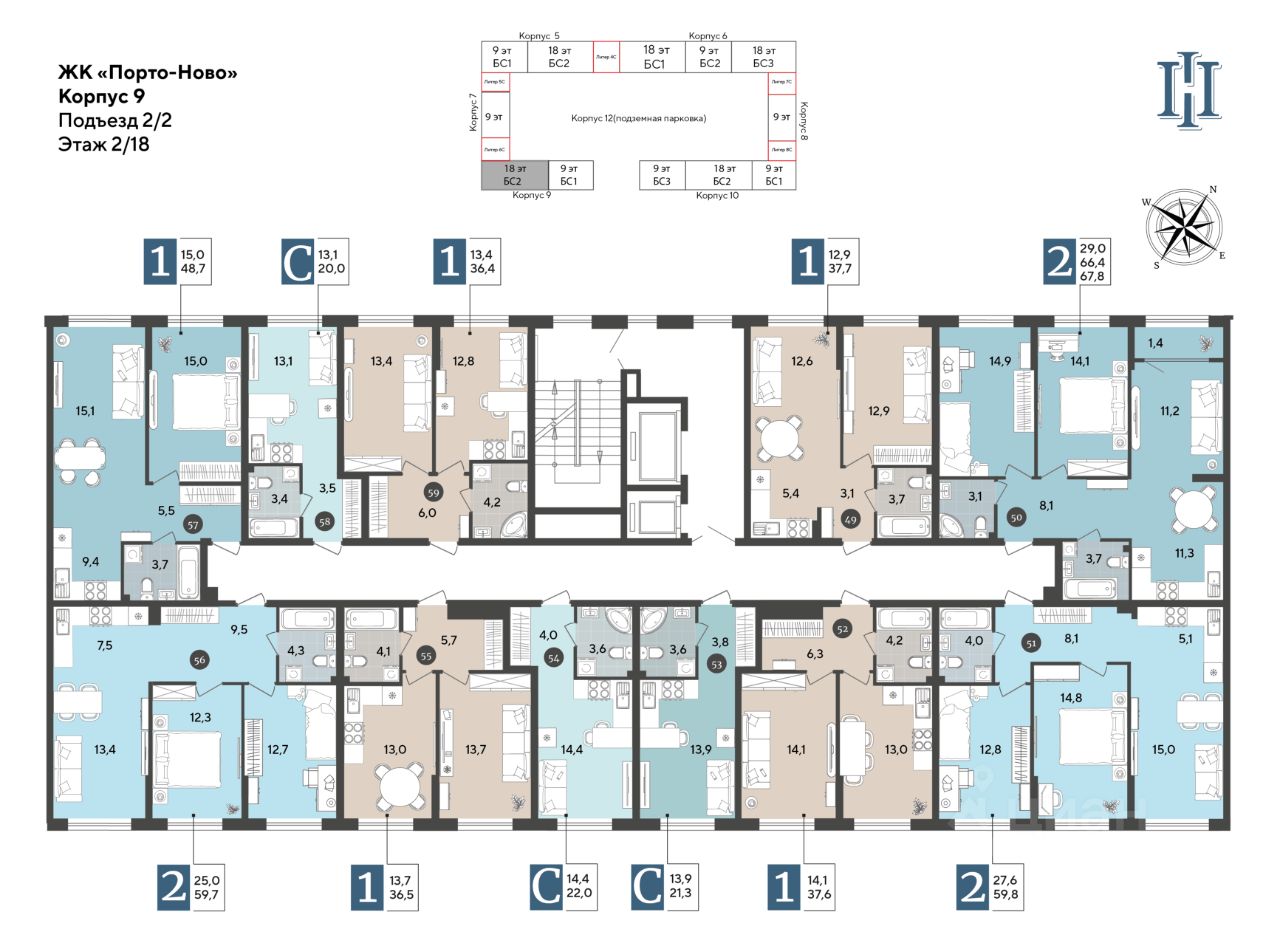 В продаже 2-комнатная квартира от застройщика! ЖК "Порто-Ново" г. Новороссийск, Литер 9