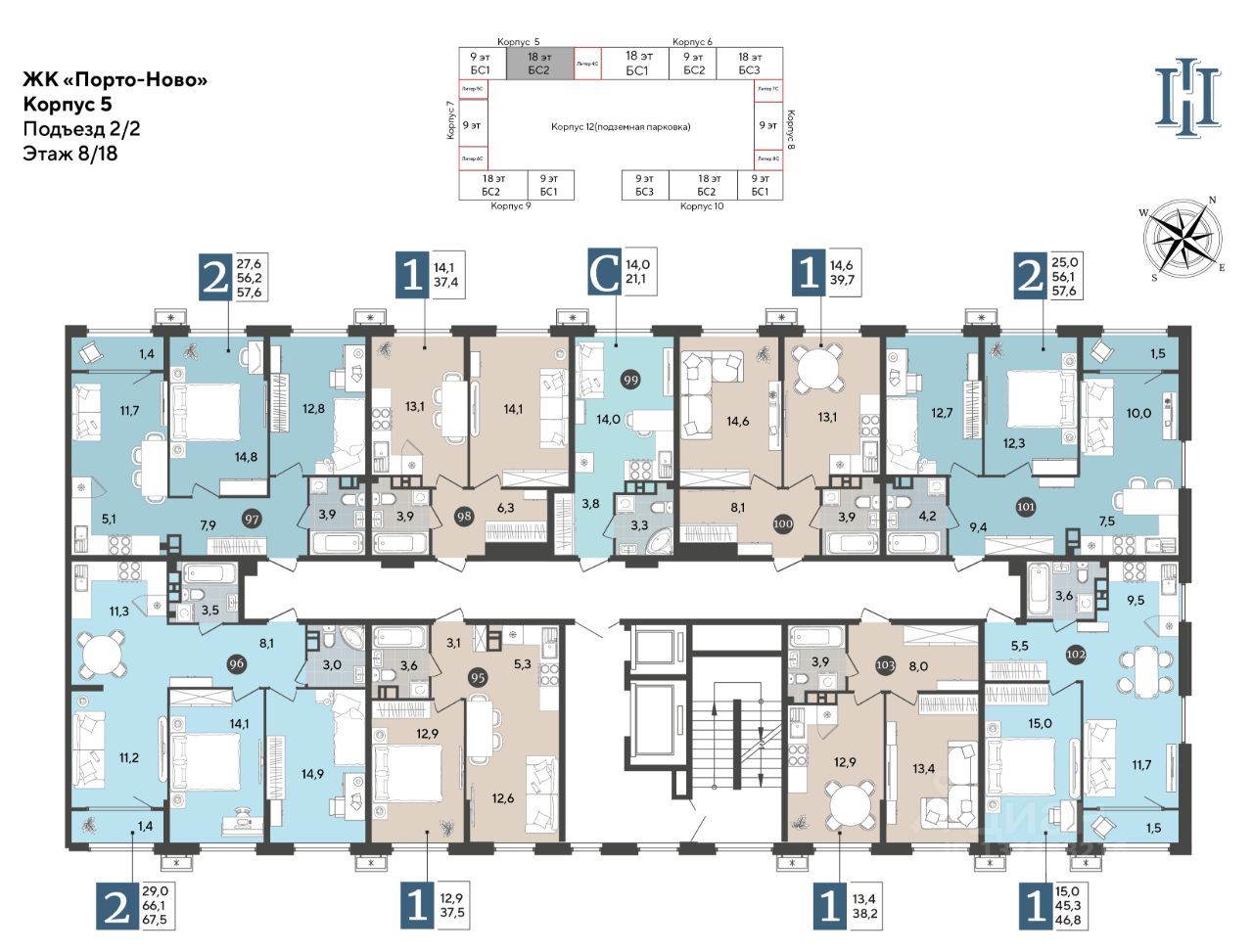В продаже 2-комнатная квартира от застройщика! ЖК "Порто-Ново" г. Новороссийск, Литер 5