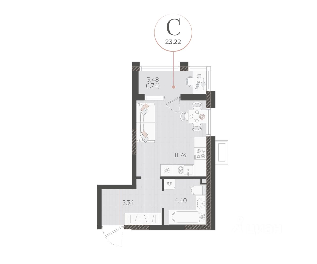 Общая площадь23,22 м²