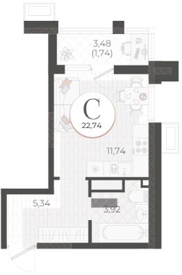 Общая площадь22,74 м²