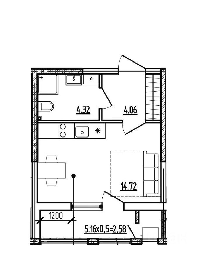 Общая площадь25,68 м²