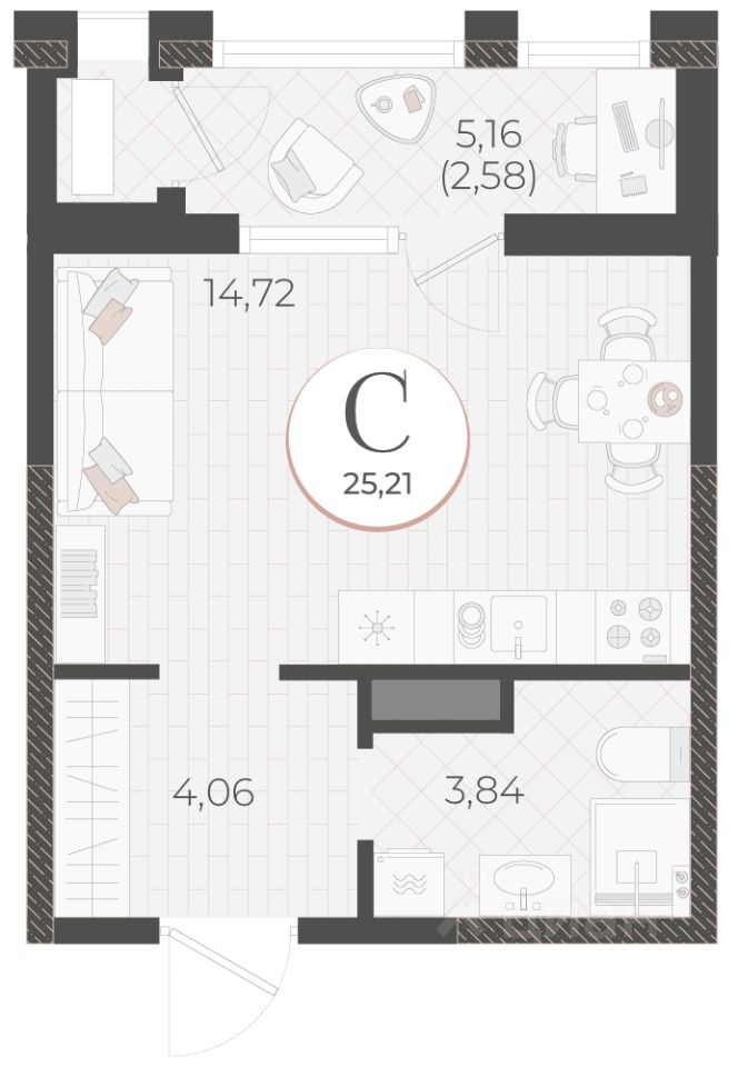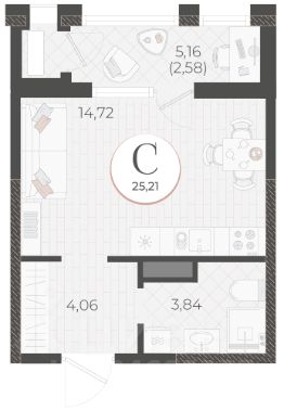 Общая площадь25,21 м²
