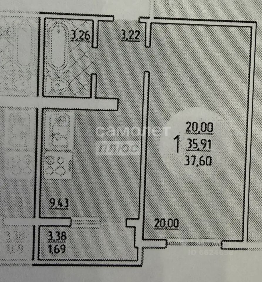 Общая площадь: 35,5 кв.м.
