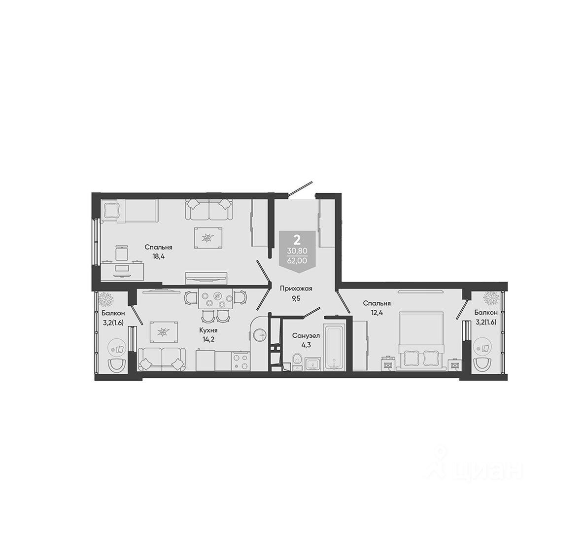 Жилая площадь30,8 м²