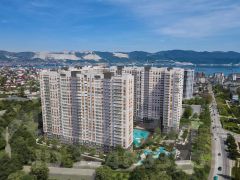 Проект включает в себя 2 дома высотой 23-24 этажа. В подъездах выполнена дизайнерская отделка в светлой цветовой гамме, для удобства жителей в местах общего пользования предусмотрена навигация. В каждой секции предусмотрены помещения для хранения велосипедов и колясок с обустроенным местом для мойки колес и лап домашних животных. Покупателям в ЖК предложено множество планировочных решений: в наличии квартиры, как классического типа, так и европланировки. На балконах и лоджиях выполнено витражное остекление. Из окон открывается шикарный вид на город и море. Квартиры сдаются без отделки. Двор комплекса закрыт от автомобилей и случайных прохожих. Для автовладельцев предусмотрен двухуровневый подземный паркинг на 650 мест. По всему периметру двора размещены видеокамеры. Внутренний двор благоустроен: предусмотрены пешеходные дорожки, скамейки и деревянные мини-беседки с розетками. Также спроектированы детские игровые площадки, уличные тренажеры и спортивная площадка для командных игр. ЖК расположен в южной части Новороссийска, на пересечении Мысхакского шоссе и улицы Куникова. Инфраструктура района развита: в пешей доступности детские сады, школы, аптеки и поликлиники, магазины и парки.