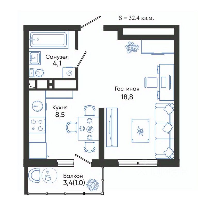 Общая площадь32,3 м²