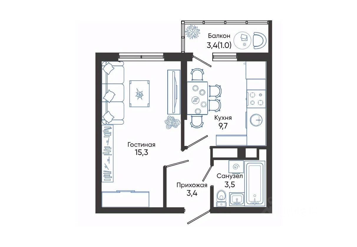 Площадь кухни9,7 м²