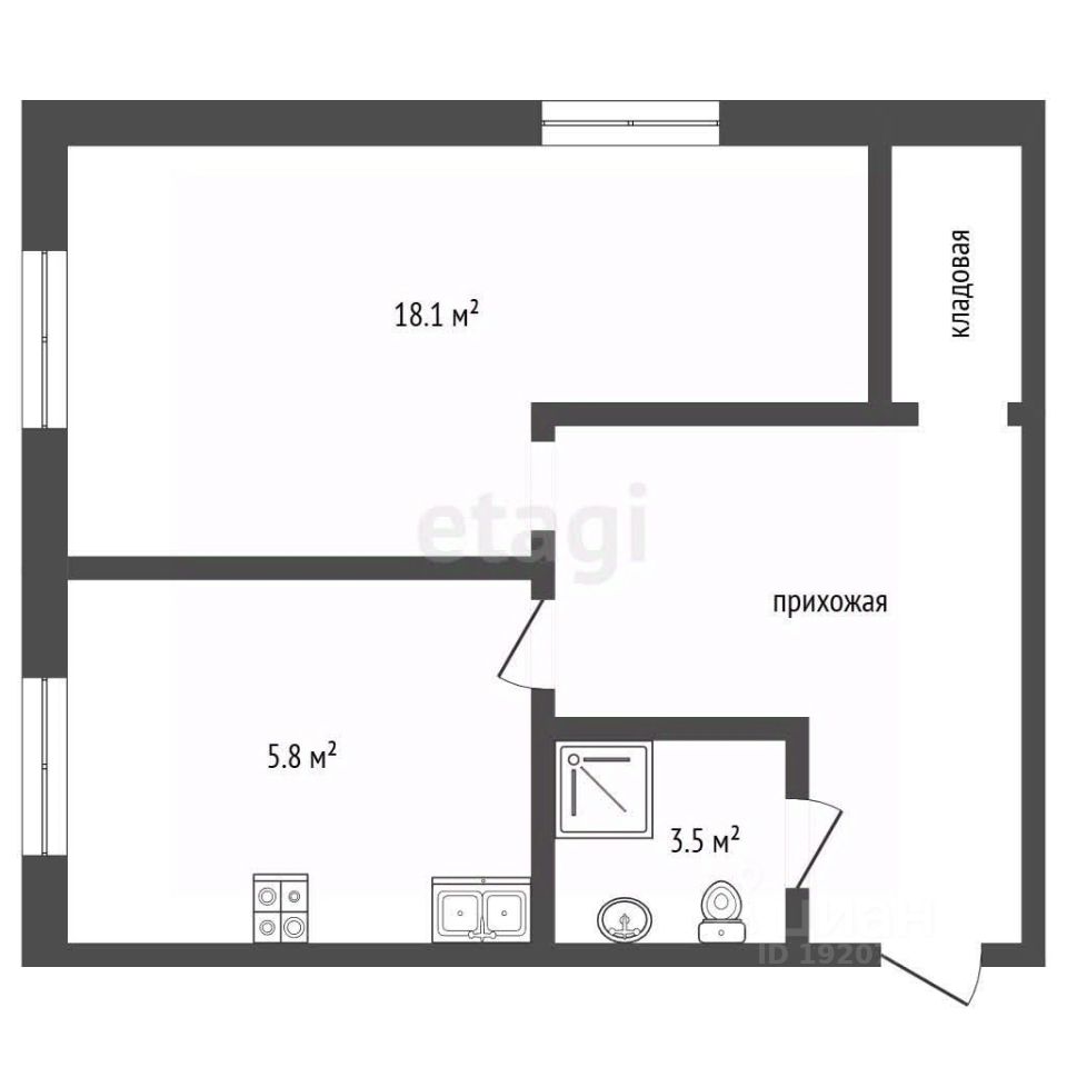 * Общая площадь 31,10 кв.м