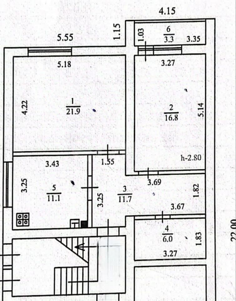 Планировка: Просторный коридор, две жилые комнаты (22 кв.м и 17 кв.м), большой совмещенный санузел (6 кв.м) с теплым полом и кафелем.