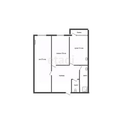 • Площадь квартиры позволяет создать кухню-гостиную и две отдельные спальни.