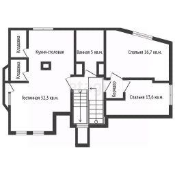 Учитывая мансардный тип квартиры, общая площадь, согласно ЕГРН 75,6 кв.м., а кухня-столовая 45 кв.м.