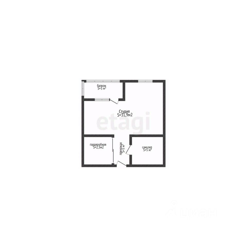 Студия площадью 31,9 кв.м., расположена на 4 этаже.