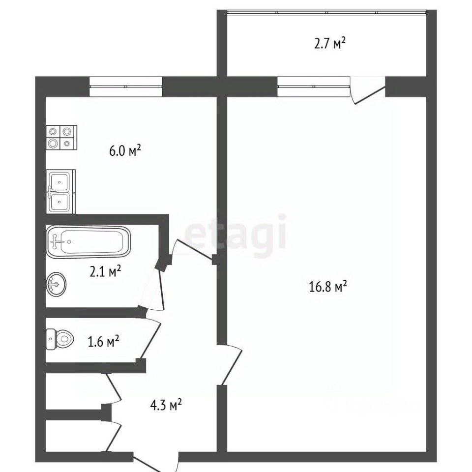 * Общая площадь 30,8 кв.м.