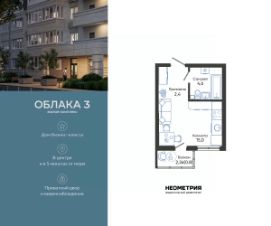 Продается квартира в жилом комплексе "Облака" от федерального девелопера "Неометрия".