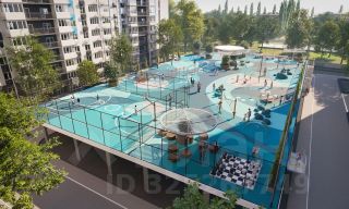 Во дворах реализована концепция "активити-парка" — это большое зелёное пространство для отдыха и занятий спортом: