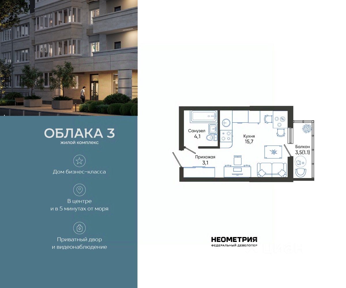 Продается квартира в жилом комплексе "Облака" от федерального девелопера "Неометрия".