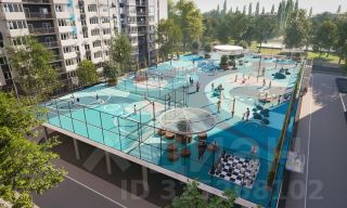 Во дворах реализована концепция "активити-парка" — это большое зелёное пространство для отдыха и занятий спортом: