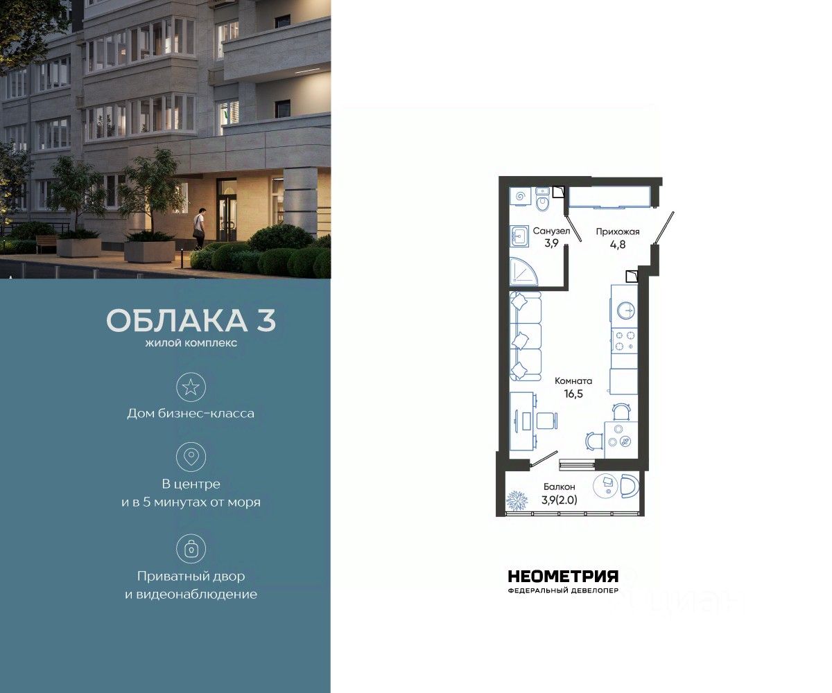 Продается квартира в жилом комплексе "Облака" от федерального девелопера "Неометрия".