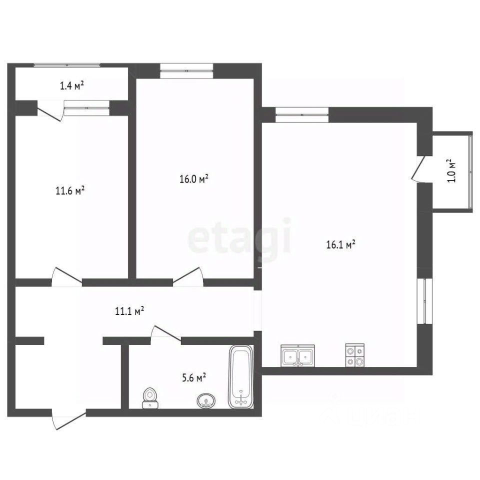* Oбщaя площадь 66,0 кв.м