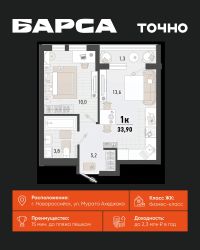 Общая площадь33,9 м²