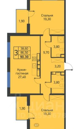 90 м²