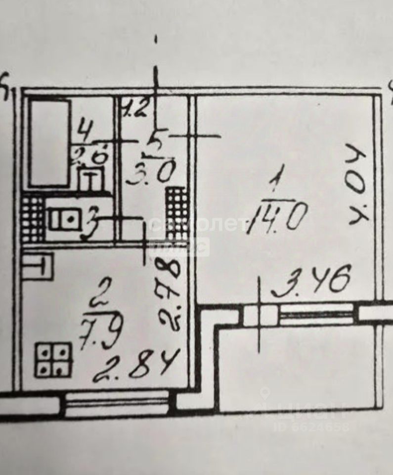 Жилая площадь - 14 кв.м.
